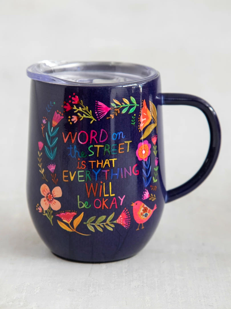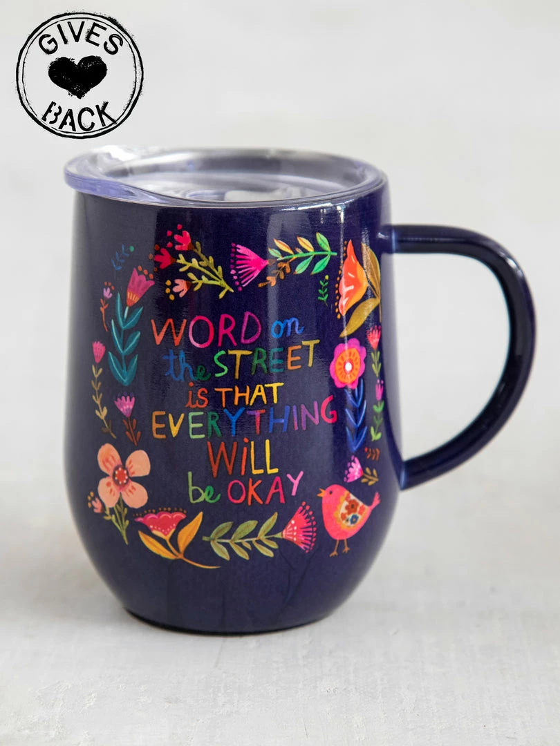 (The Word on the Street Coffee Tumbler is a part of our FEARLESS Collection which helps educate, empower, and reduce the stigma of anxiety disorders. A portion of proceeds from the FEARLESS Collection gives back to JACK Mental Health Advocacy. To learn more about anxiety and how to get help, visit our FEARLESS Resource Page)Â
