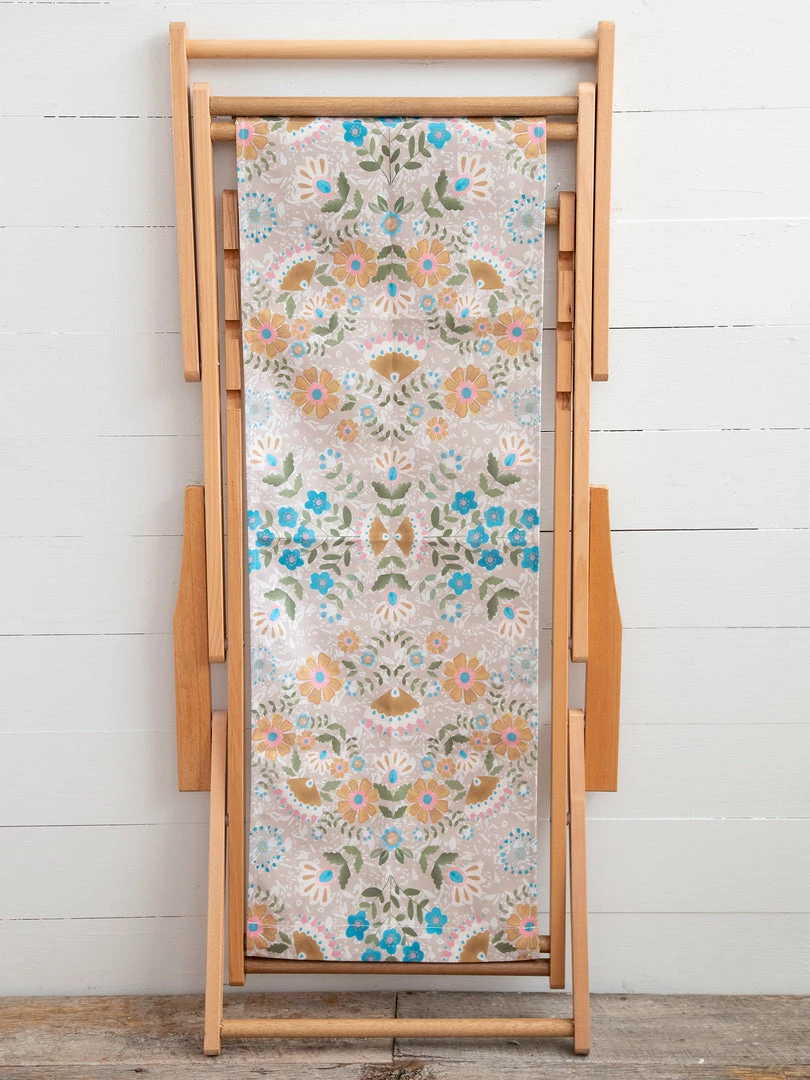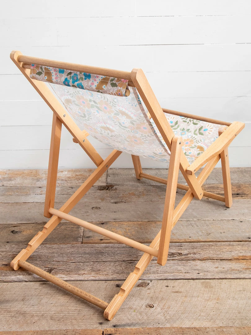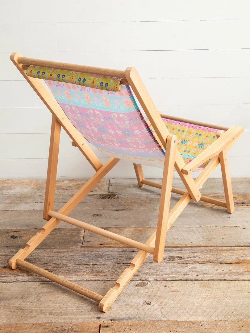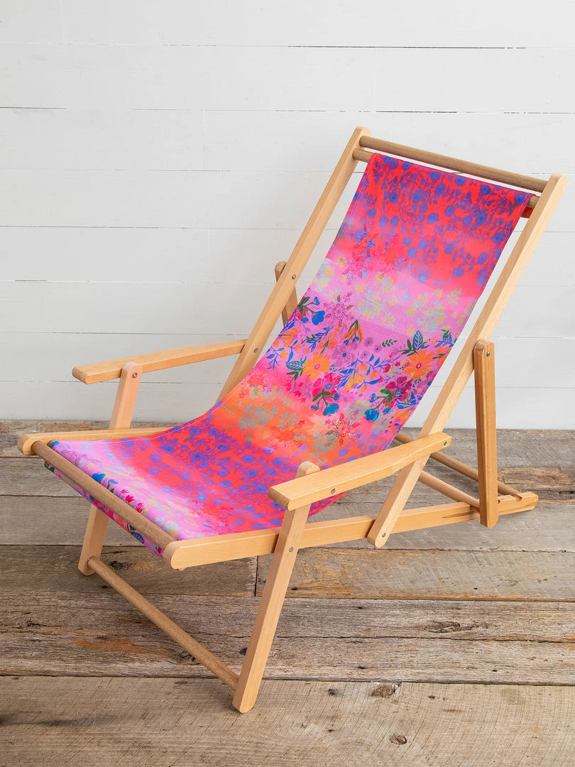 Lounge with your friends on sunny days in this Garden Sling Chair! They have the prettiest prints that are so fun to make a set with or to mix & match! Each one features a wood frame that reclines to three different angles and an arm rest, making them so comfy to sit in. They are great on a covered patio and make the perfect garden party chairs! They fold up for easy storage and we recommend storing them indoors when you’re not using them. Some assembly is required.