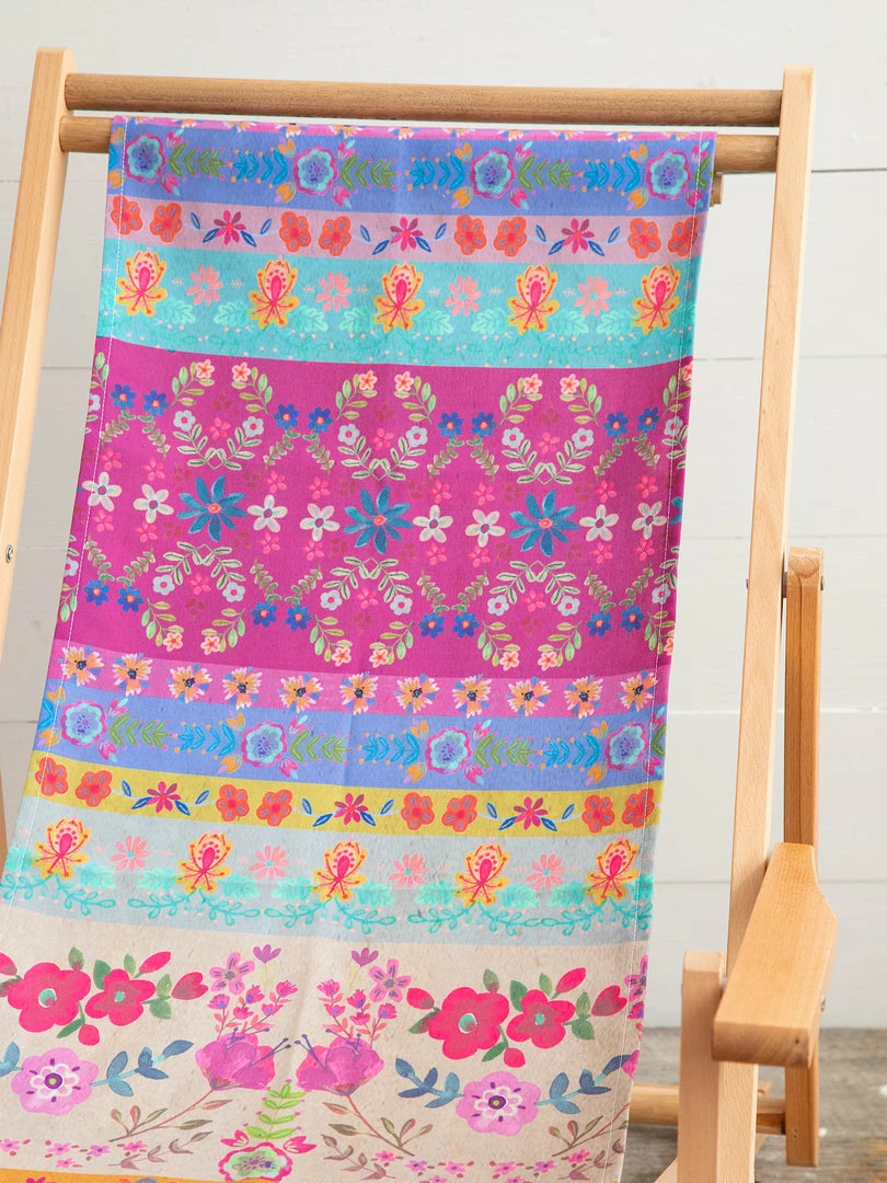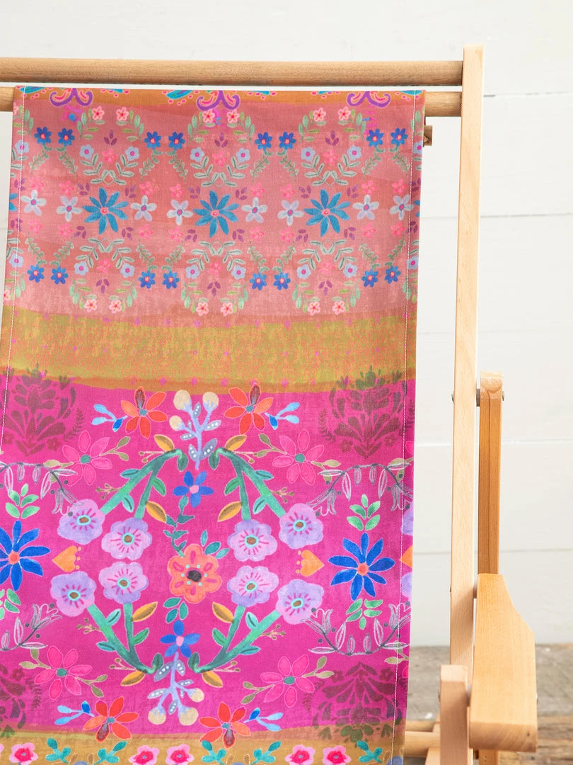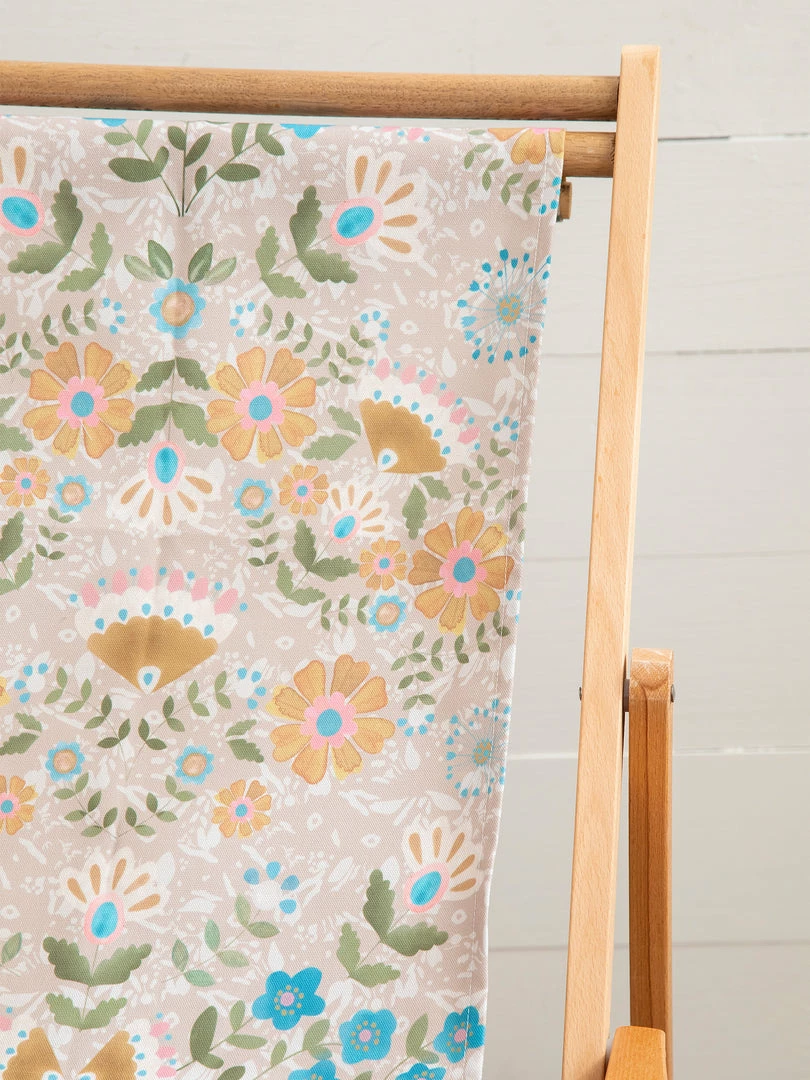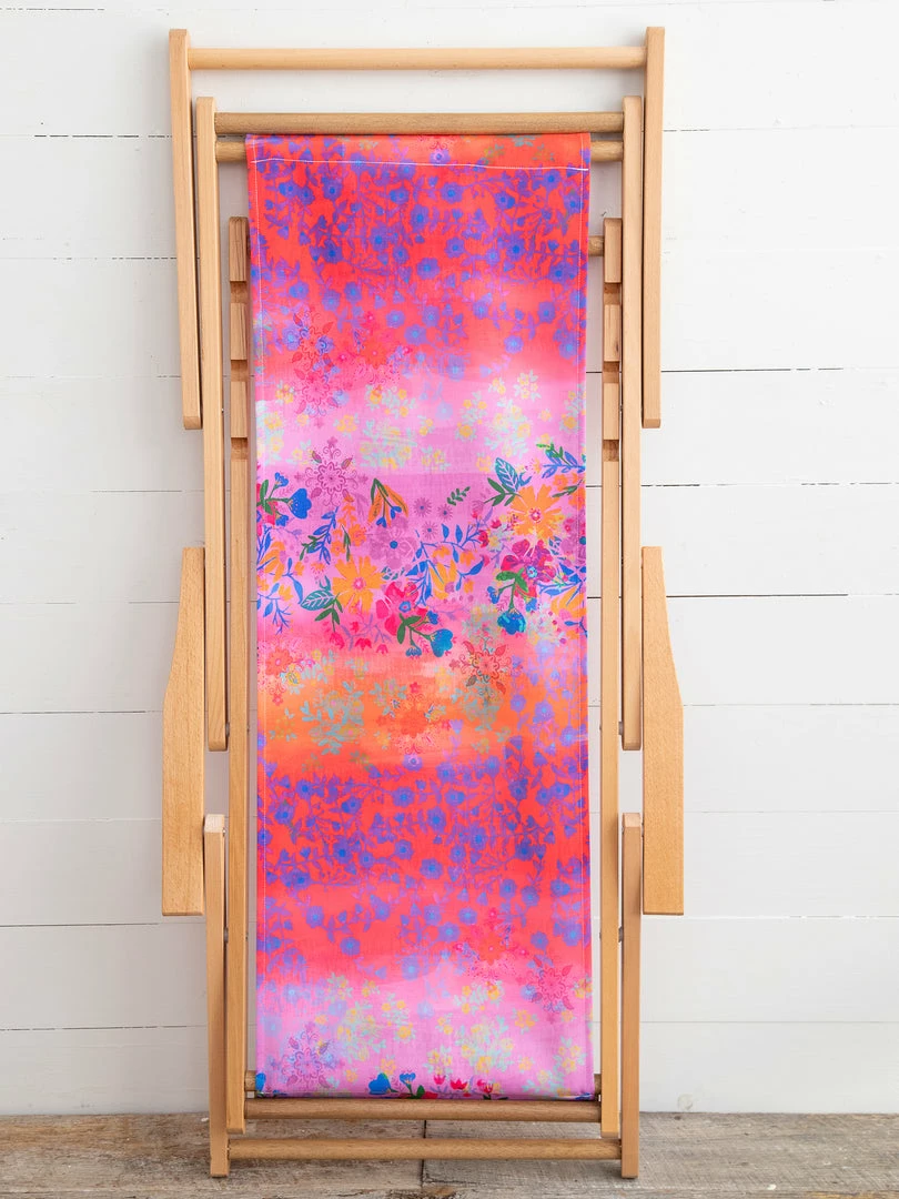 Lounge with your friends on sunny days in this Garden Sling Chair! They have the prettiest prints that are so fun to make a set with or to mix & match! Each one features a wood frame that reclines to three different angles and an arm rest, making them so comfy to sit in. They are great on a covered patio and make the perfect garden party chairs! They fold up for easy storage and we recommend storing them indoors when you’re not using them. Some assembly is required.