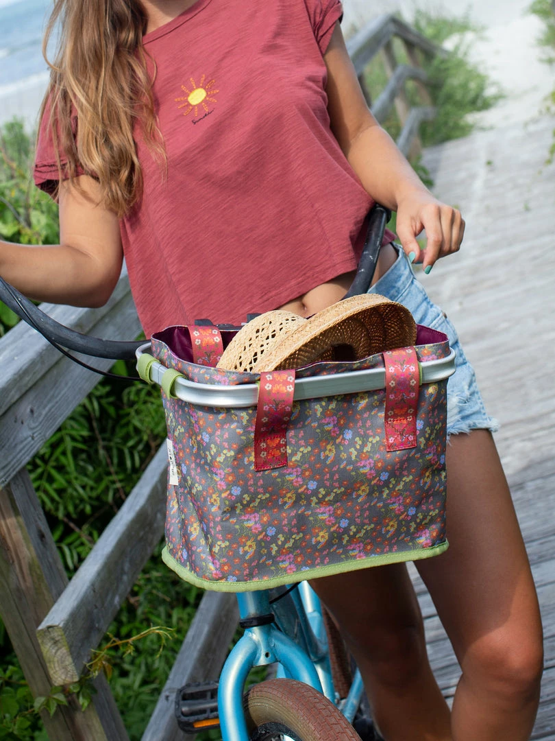 Every bike deserves a cute & functional Bike Basket! This basket provides handy storage for trips to the beach, farmers market, shopping & all of your biking adventures! The frame makes it so sturdy for holding your beach towel, water bottle and other little things and it’s a basket & bag all in one! It attaches soo easily and when you remove it, it turns into a bag to carry along with you!