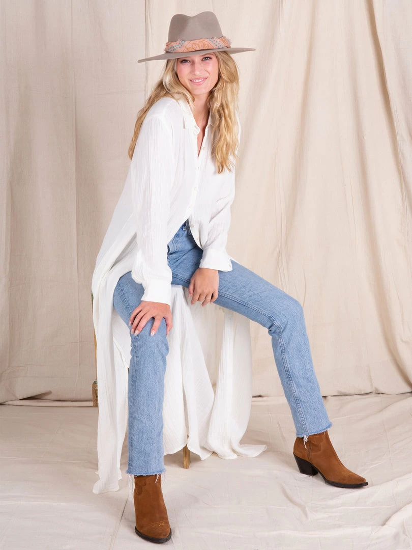 The Drew Gauze Shirtdress is SO comfy and easy to wear! It’s such a classic piece and can be easily styled with cool jewelry or a fedora! It’s made from 100% cotton gauze and features side slits, pockets and buttons all the way down… it’s literally like a basic button-down shirt, but as a dress!