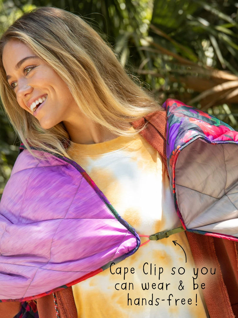The Camp Quilt is so cool and we’re absolutely loving it! It’s washable, lightweight & easy to pack! It’s wind & water resistant, making it perfect for camping and beach nights… but can also be used indoors for sleepovers or even to keep in your car for when you need it! It’s like a sleeping bag without the zipper! It features corner loops to stake it to the ground and a cape clip so you can wear it and be hands-free! While our camp blankets are not temperature rated, they should keep you plenty warm. Need something warmer? Layer with 2 blankets!