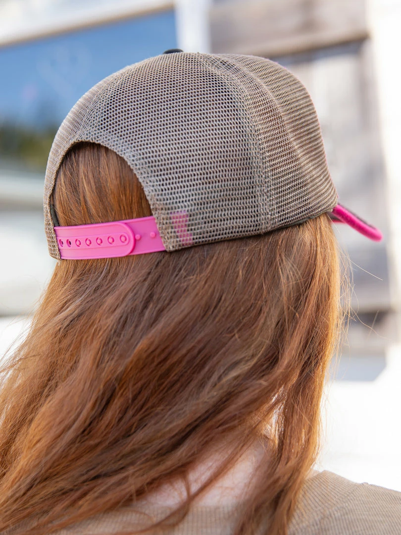 The perfect hat for the on-the-go girl! It’s so pretty and colorful & is the cutest easy accessory for any outfit! It features a canvas front with sewn-on patch, breathable mesh and a snapback closure… so one size fits most!