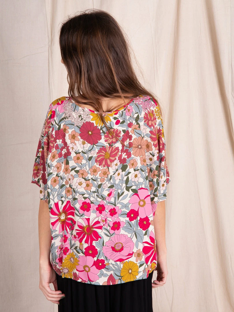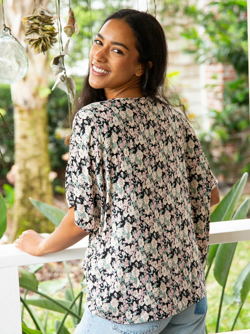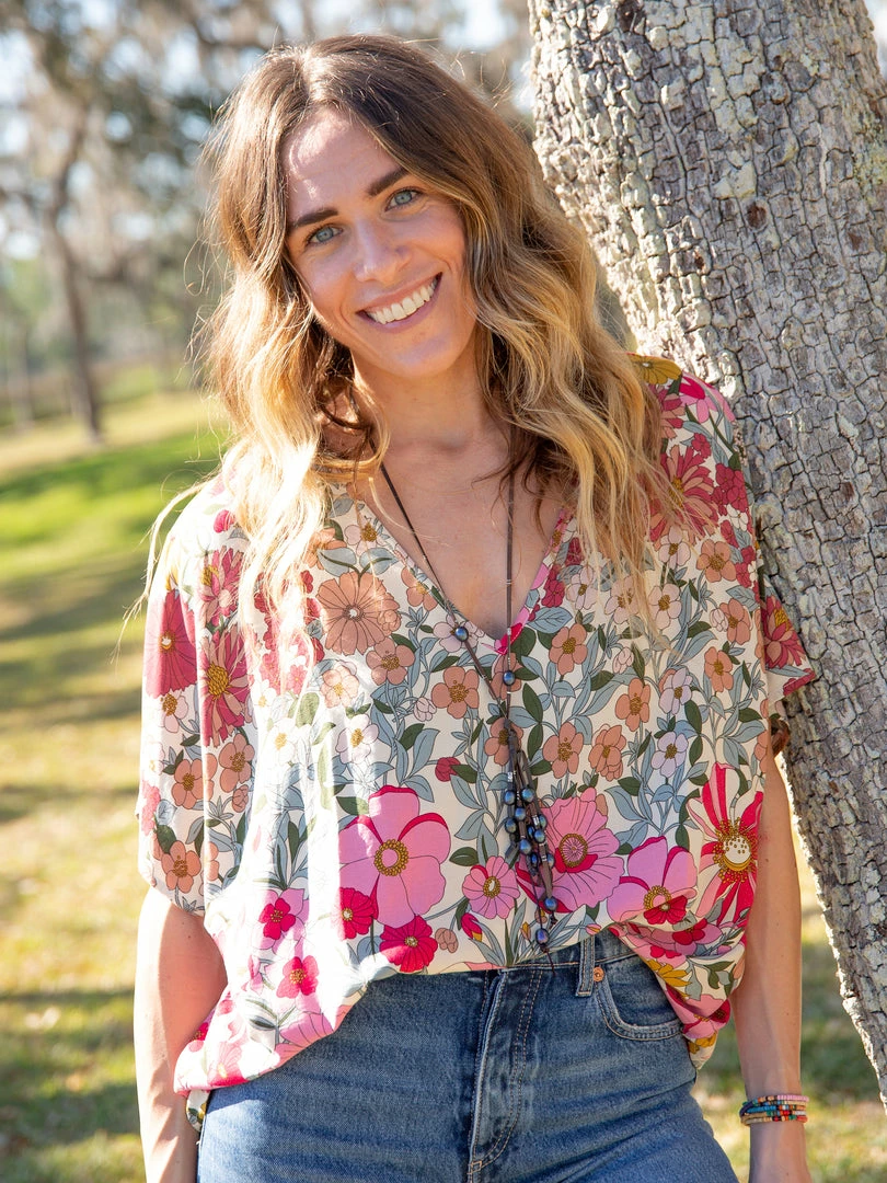The Easy V-Neck Top is exactly what it sounds like… easy and relaxed! It features a pretty floral print, dolman sleeves and an oversized boxy fit. It looks so cute paired with our bottoms or your favorite pair of jeans. It is the kind of top you can just throw on and go & still look put together!