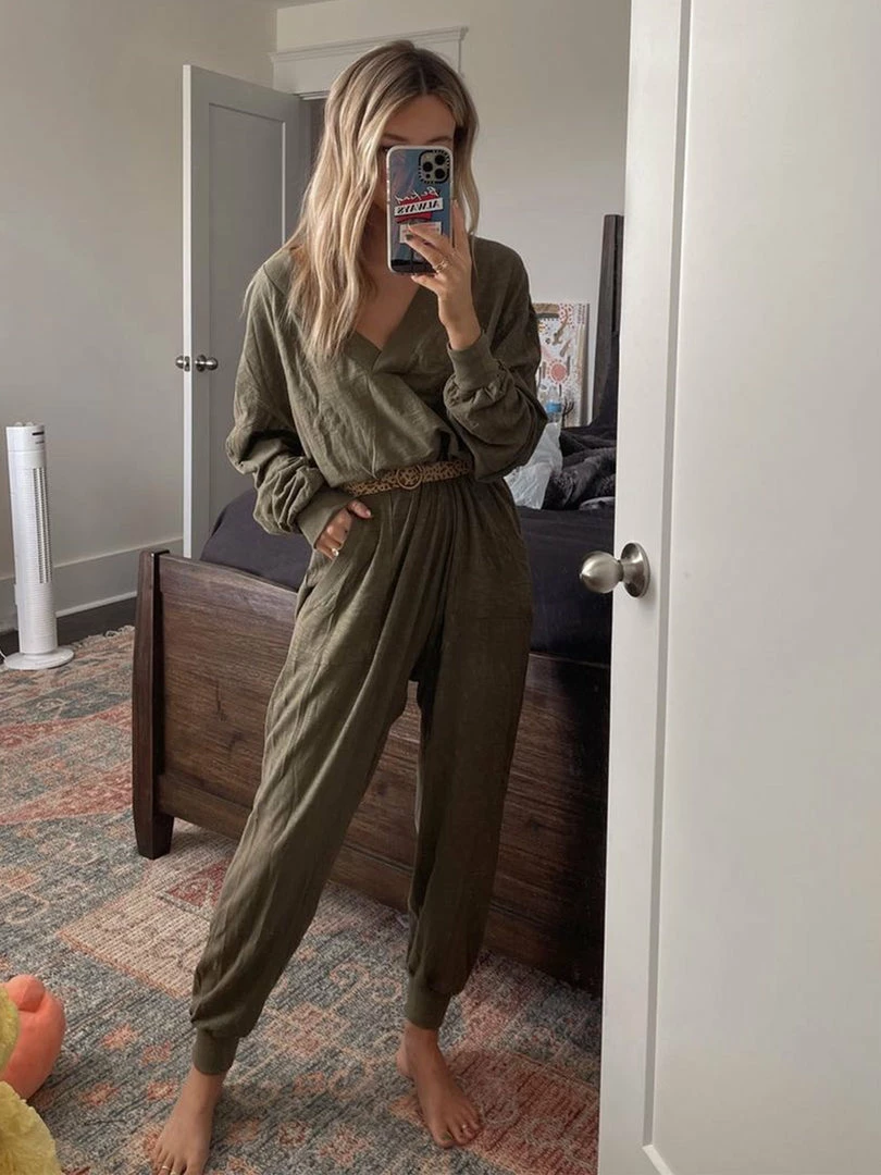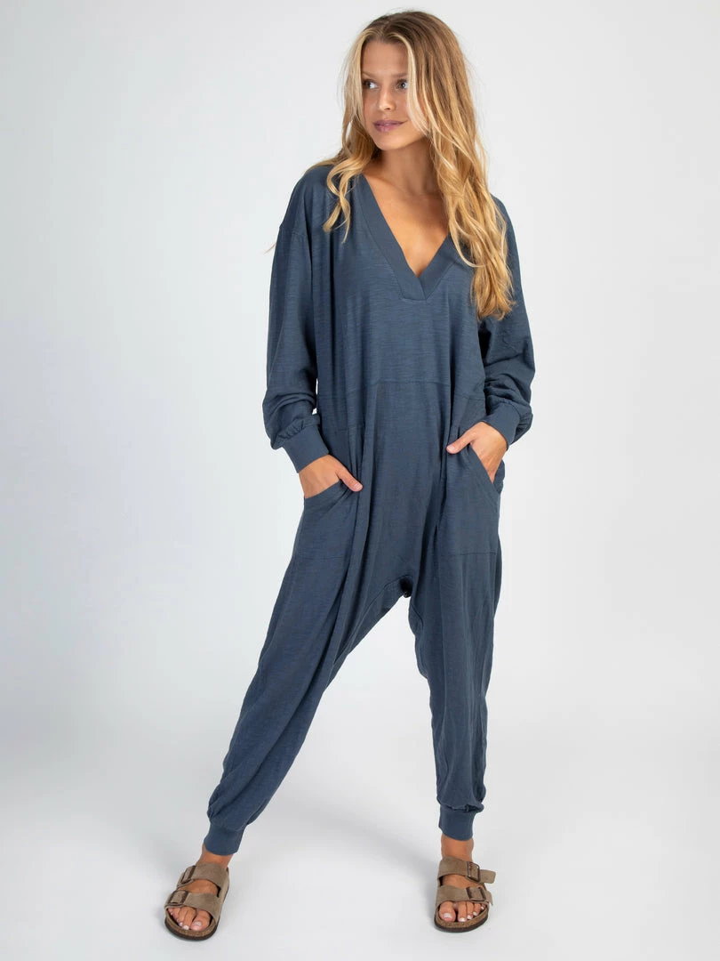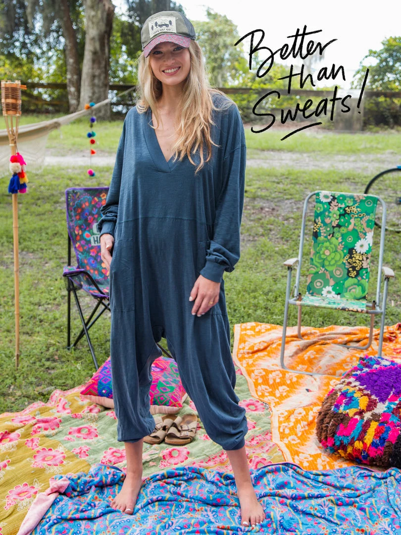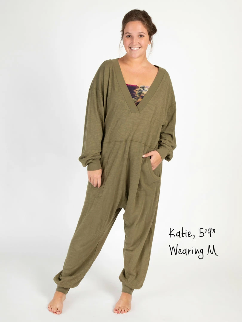 Sometimes you need something to throw on that is not only the comfiest outfit ever, but also cute enough to rock at the grocery store, dog walk or coffee run! The Johnnie Jumpsuit was designed to be super oversized with a drop crotch & a slouchy COZY fit! The low v-neck is perfect to pair with a colorful bandeau, cami or lace bralette. If you’re unsure what size to get, we recommend to sizing down two sizes!