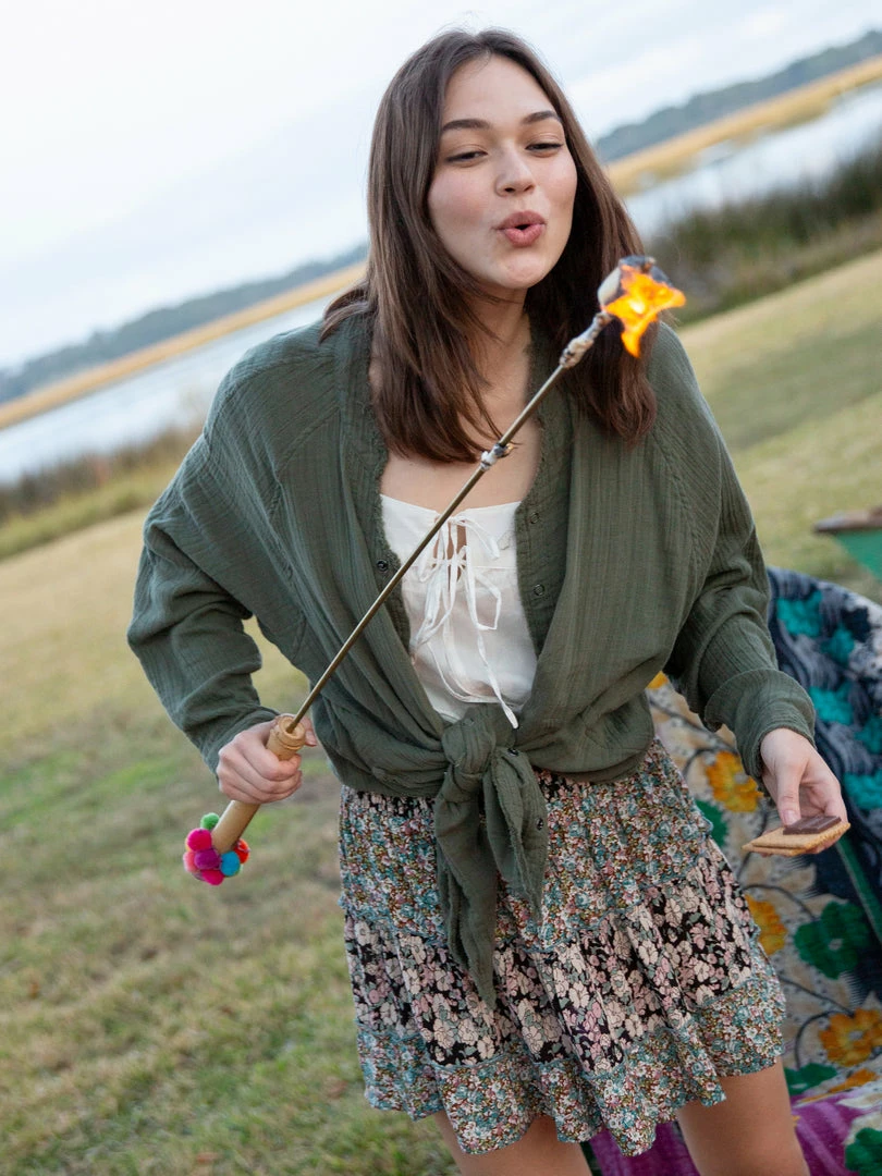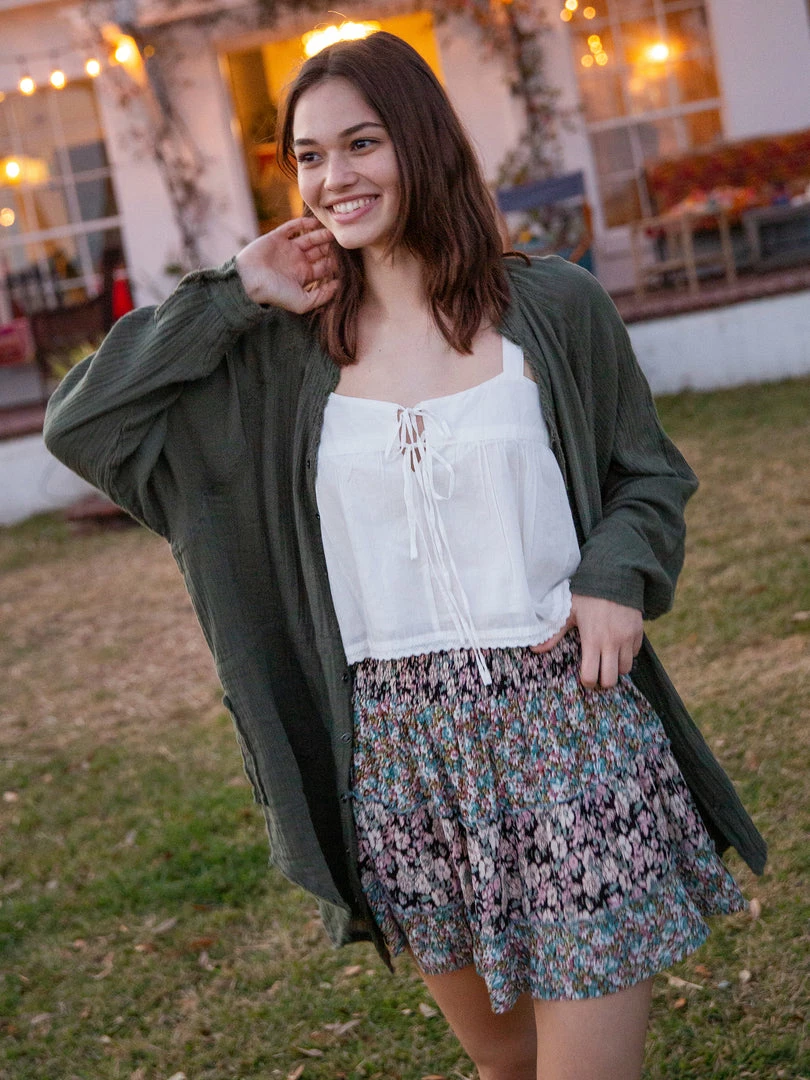 The Kerri Smocked Mini Skirt is one of our favorites! This woven easy-fit skirt features a smocked waistband, ruffle details and mixed-print tiers… making it so flouncy and fun to wear! We love pairing it with our tees & tanks to make the cutest outfit ever!