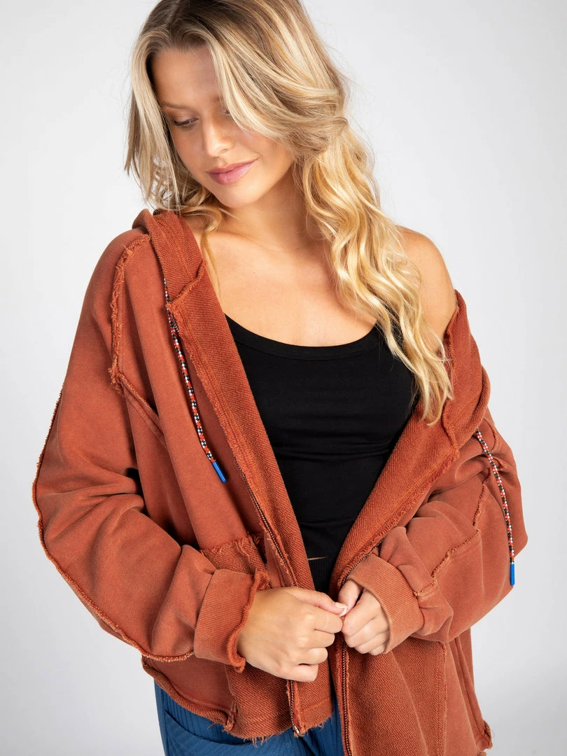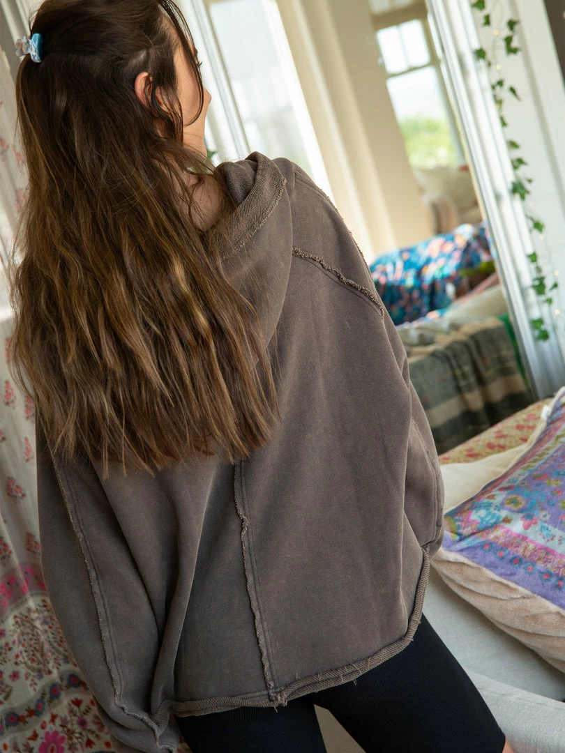 The Zip Up Weekend Hoodie will be your new favorite! It has a slouchy fit, colorful cord ties, raw edge details and pockets! It’s washed and meant to look vintage, and it’s so comfy you’ll want to wear it every day of the week!