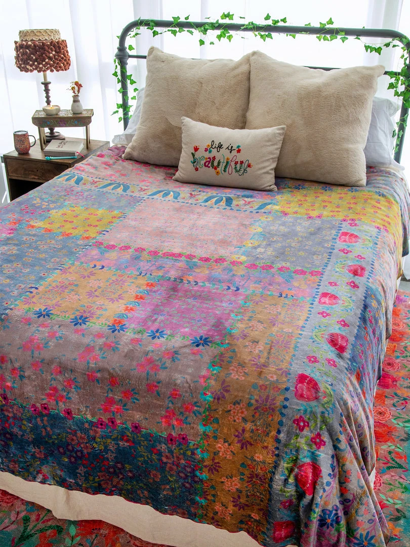 Does your house need a bohemian touch? Our Cozy Coverlet Blanket is an easy way to change up the entire look of a room! Throw it over your couch to give it a makeover or to protect it from your dog’s hair. Simply toss it in the washer for easy cleanup. It’s even big enough to fit a king-size bed! They’ll be no more fighting over a small throw blanket… there’s plenty of room to cozy up with someone else for a movie and popcorn. Completely cover that favorite chair that’s seen better days. Perfectly pair it with one of our many boho pillows! It’s reversible, so you can change it each day according to your mood. We’ve created our coverlets so you can enjoy a vibrant solid color on one side and super cute artwork on the other.