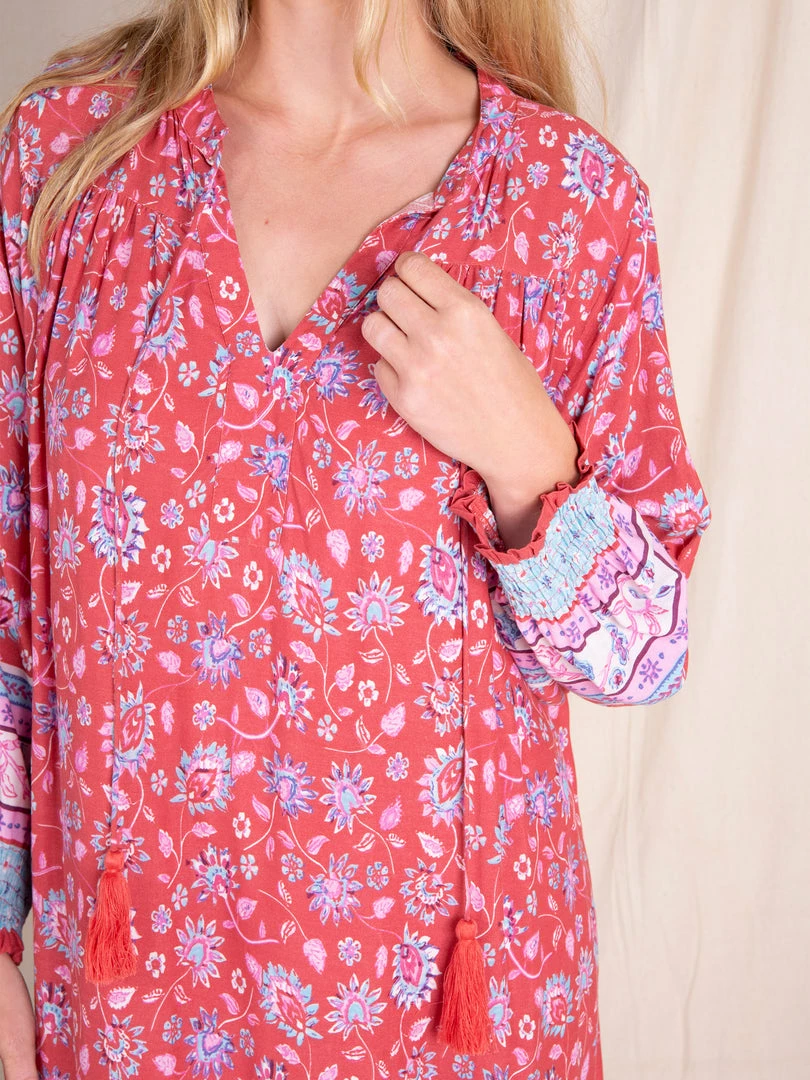 You loved the Dara Mini Dress so much, we had to make a Dara Maxi… and it’s so beautiful! It features a v-neckline with tassel ties, smocked sleeve openings & a pretty border print! It’s lightweight, making it so comfy and easy to wear – literally anywhere!