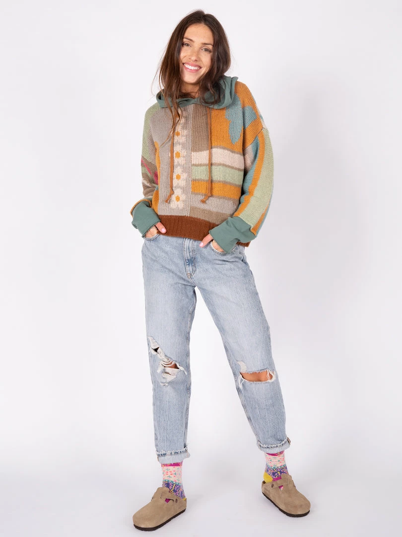 The Dreamer Jacquard Sweater is so unique and fun! It features intarsia knitting using super soft yarns, French terry on the sleeves and hood, plus a mix of pretty colors. It’s kind of a sweater and sweatshirt wrapped up in one! The relaxed fit is so comfy and easy to just throw on and go!