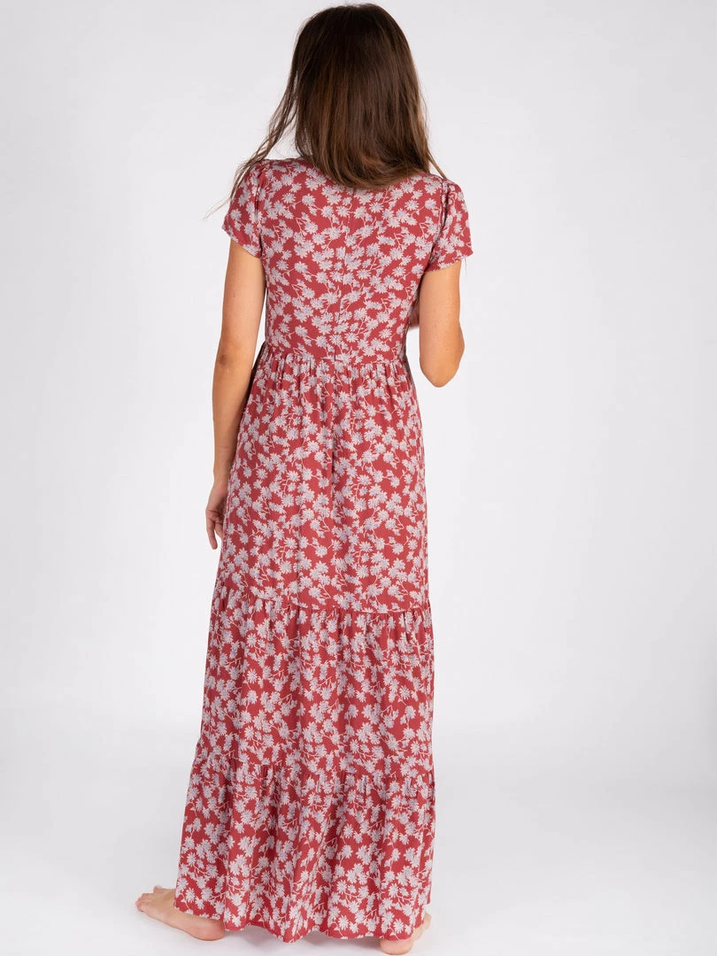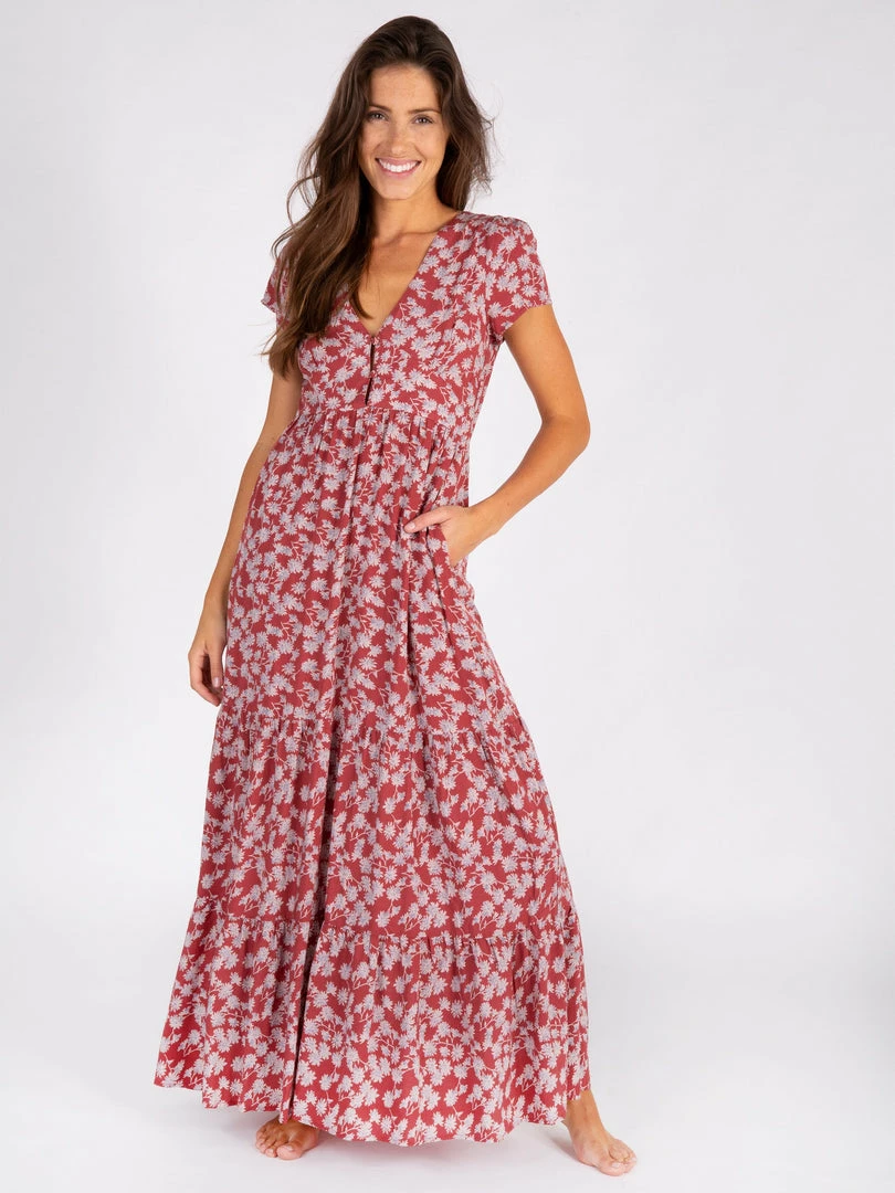 We love maxi dresses, and you can never have too many! The Evangeline Dress has a low cut v-neckline, dainty buttons in the front and short sleeves. Its comfy style is so flattering and easy to wear! You can dress it up or down for any occasion and the print is so pretty… you’ll want to wear it everywhere! Oh, and it even has pockets!