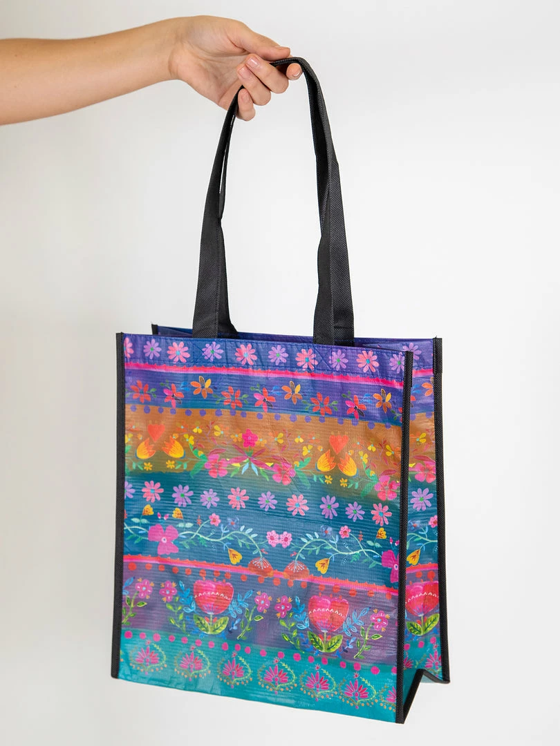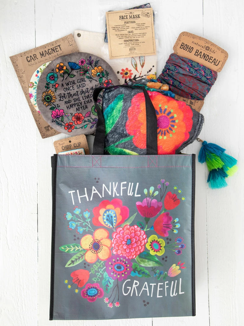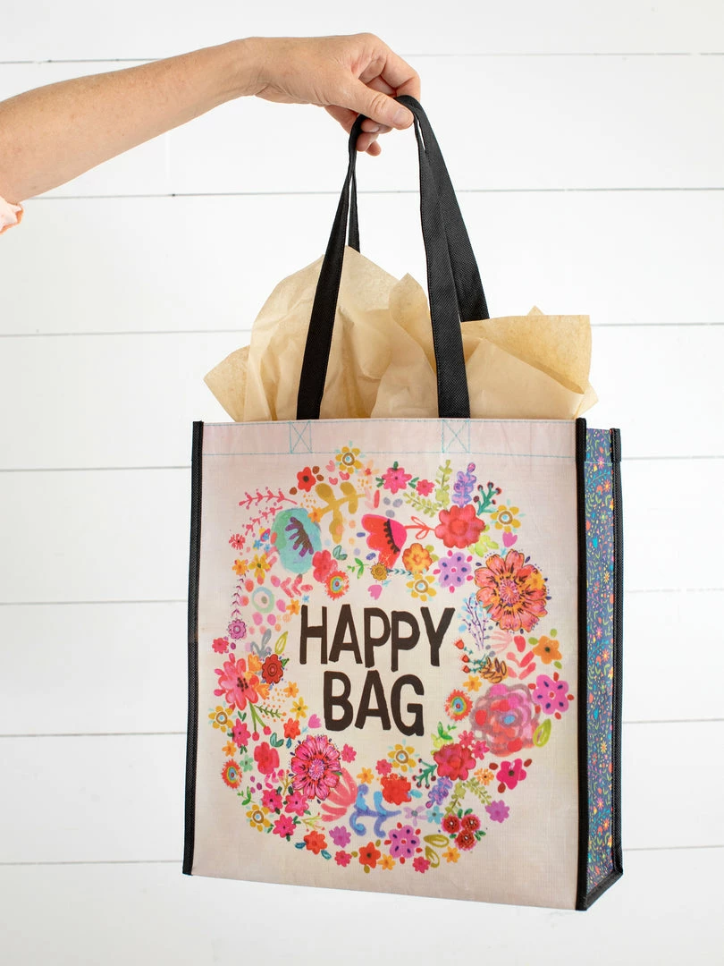 The best gift is a Happy Bag full of Natural Life treasures! Why use a boring gift bag when you can make your gift even cuter with a Happy Bag? Choose one of our colorful prints or sweet sentiments to express how you feel and make them feel loved! The giving can keep going, because it’s made from recycled water bottles, so it lasts forever! The Extra Large Happy Bag is just the right size for a cozy blanket, sweatshirt, or anything else! Keep some in your trunk to use at the Farmer’s Market or grocery store! They’re perfect to collect and store in your gift closet for later too. Take the frustration out of gift giving and keep an assortment of Happy Bags on hand!