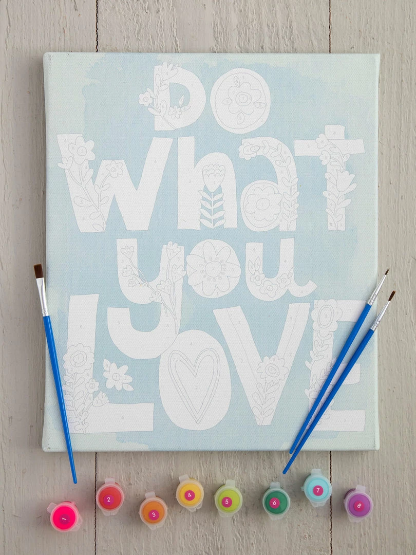 We made a Paint By Numbers Kit! It’s the perfect creative hobby for anyone, even if you haven’t held a paintbrush in years! Everything you need is included… 8 beautiful paint colors, 3 brushes and the art comes on a mounted canvas that you can easily hang up right away! You can even use coffee and a sponge to stain the edges for a vintage look! It’s so therapeutic and fun to create your own little work of art to hang anywhere!