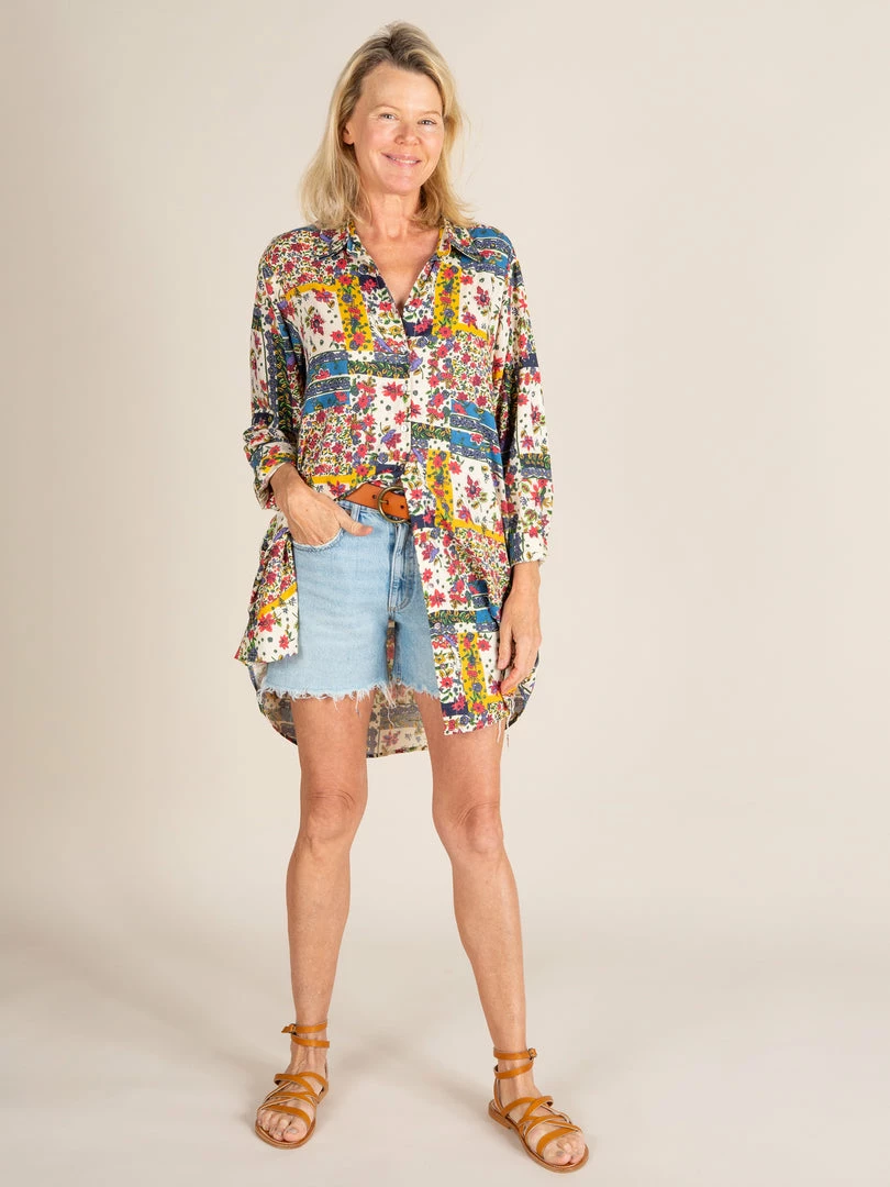 The Georgia Shirt Dress is so comfy & easy to wear! It features buttons down the front and a collar. We love the relaxed silhouette and swingy body, it makes it so fun to wear! You can wear it alone, over your favorite jeans or with our Bike Shorts! But, the best part is… this stylish button-down shirt dress even has POCKETS!