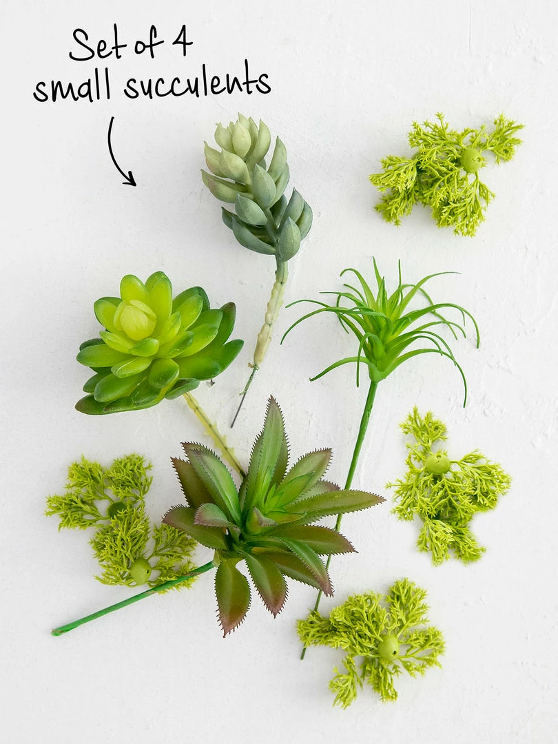 The Faux Succulent Bundle features a set of little tuckable plants to scatter around the house and moss to fill around the succulents! They look so cute in our planters, and we have soo many to choose from… pair a planter with this bundle for the best gift ever!