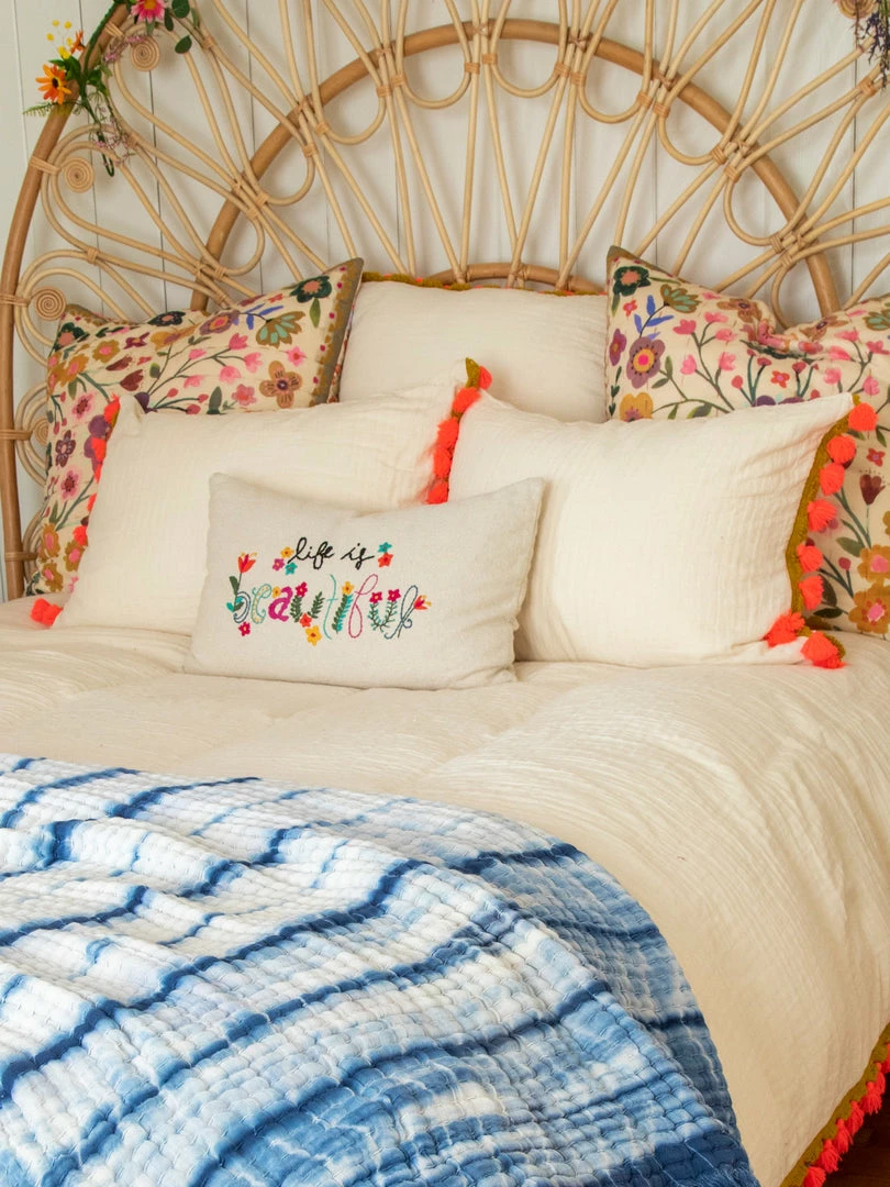 The Isabel Gauze Shams feature a beautiful soft cotton gauze and tassel trim for a fun pop of color! They look so cute paired with the Isabel Gauze Duvet Cover to make a set or you can mix and match with any of our cute bedding!