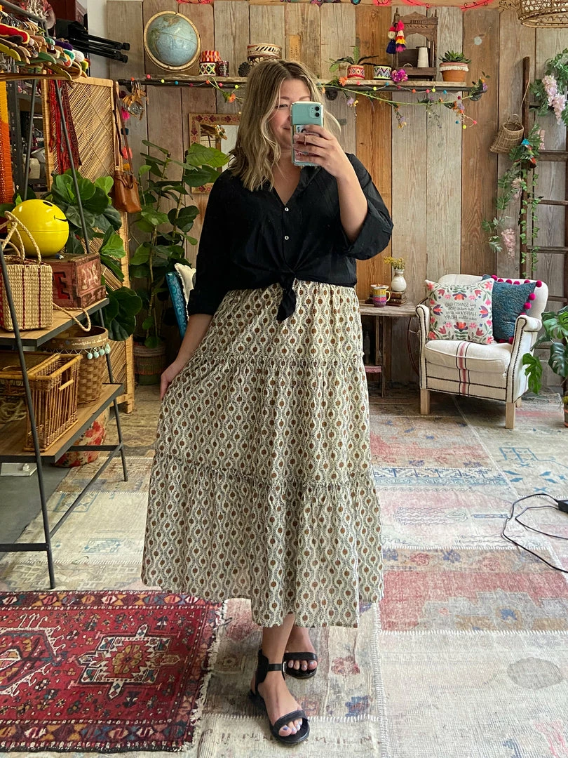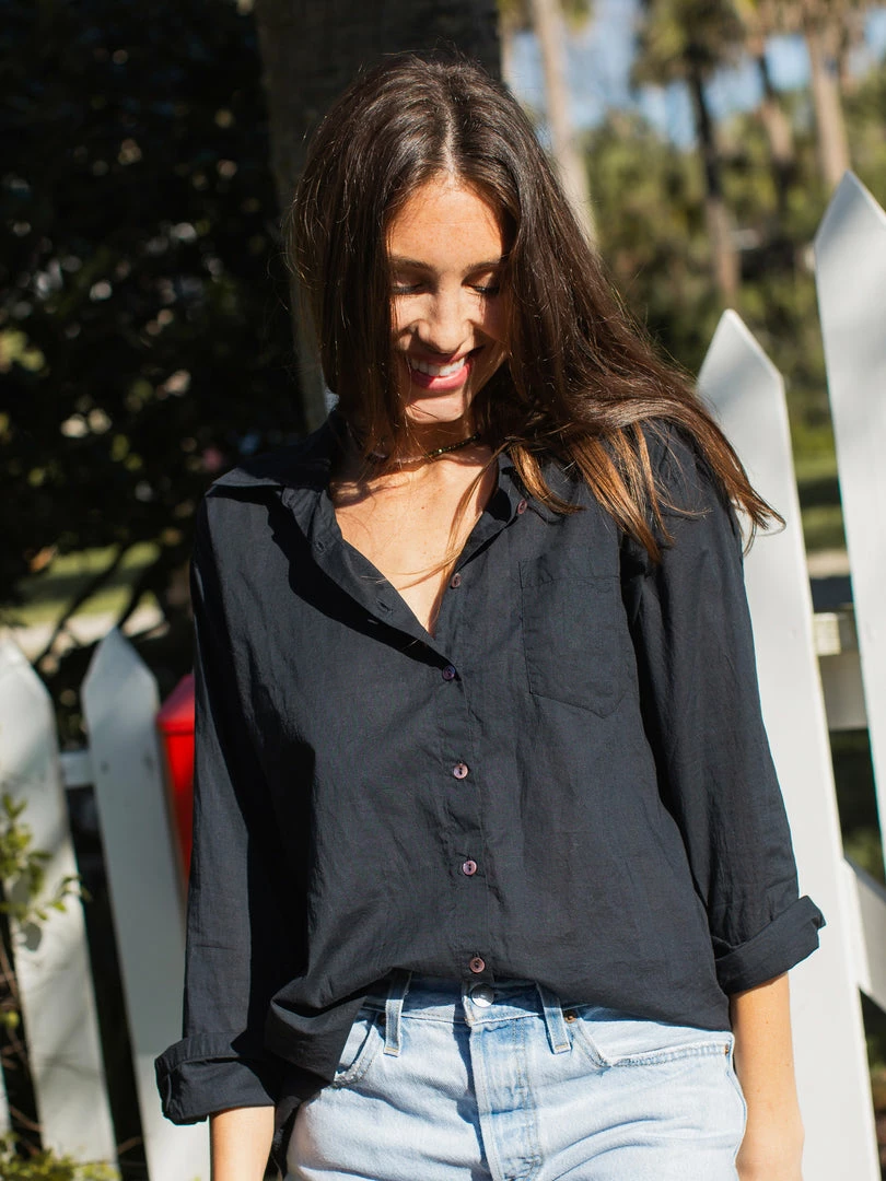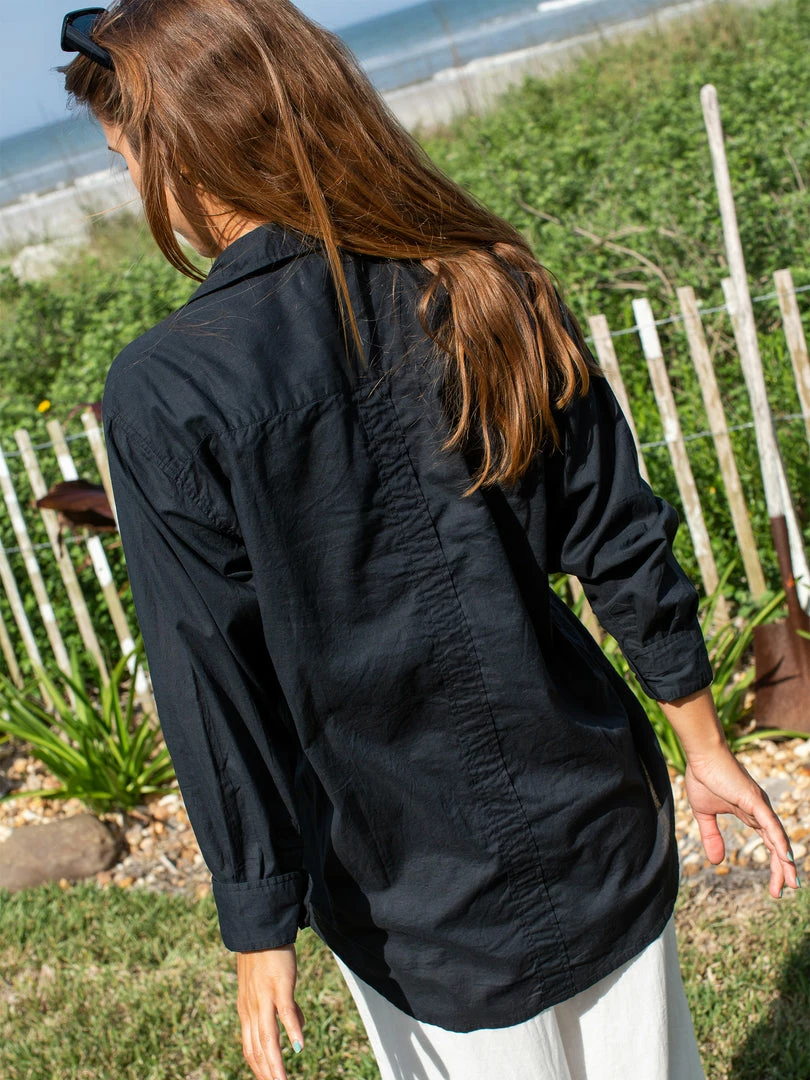 We love to create versatile clothing – and the Lived-in Button Down is no exception. Wear it as a shirt-jacket over ANYTHING; wear it alone with jeans, shorts, skirts, etc. – so many options! You can even throw this on over your bathing suit and keep it into your beach bag. Layer this shirt with a tank or tee for any occasion. Change the look entirely by wearing it over one of our jumpsuits or dresses – you’ll love the way it’s so easy to style. The lived-in look and softness only get better with age! This 100% cotton shirt has a casual, wrinkled look and is meant to be oversized for comfort!