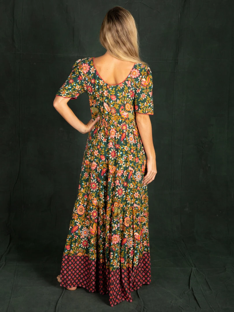 Meet the easiest dress you’ll ever wear! The Lucia Maxi Dress features the prettiest bohemian floral print, puff sleeves, a scoop neckline and dainty scallop lace trim along the neck and sleeves! The fit is super relaxed and comfy and the tiers make it so flowy and fun to wear! It’s literally the perfect everyday dress!