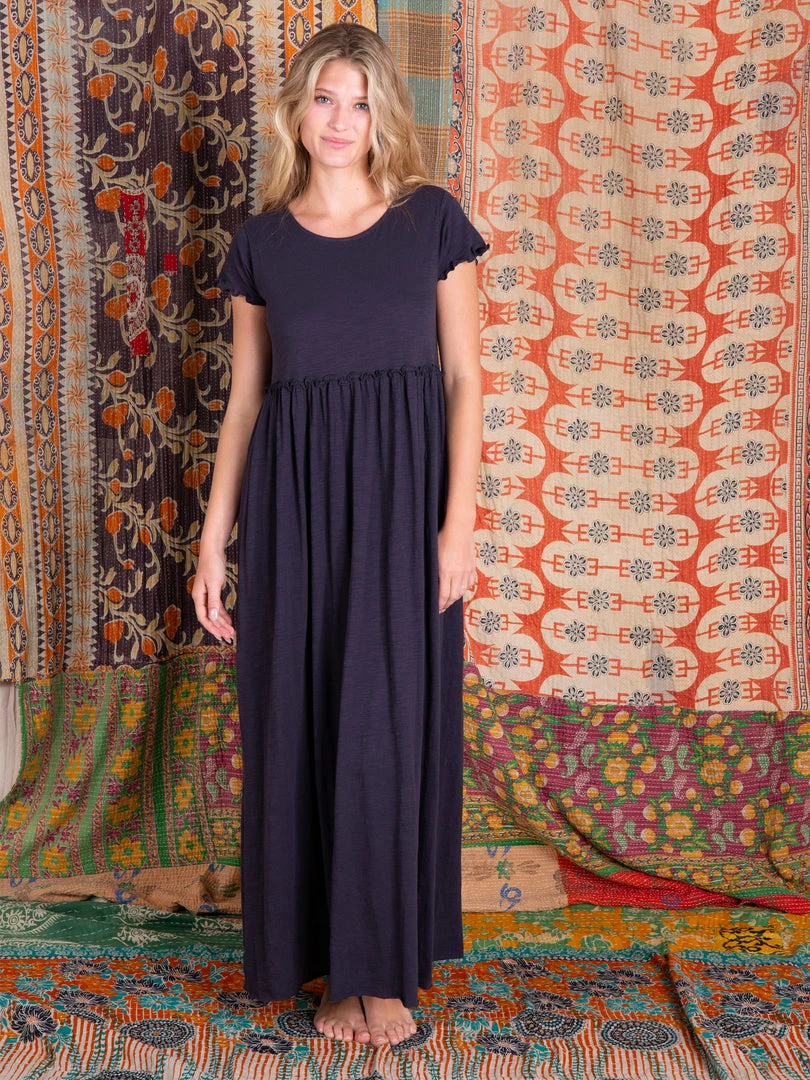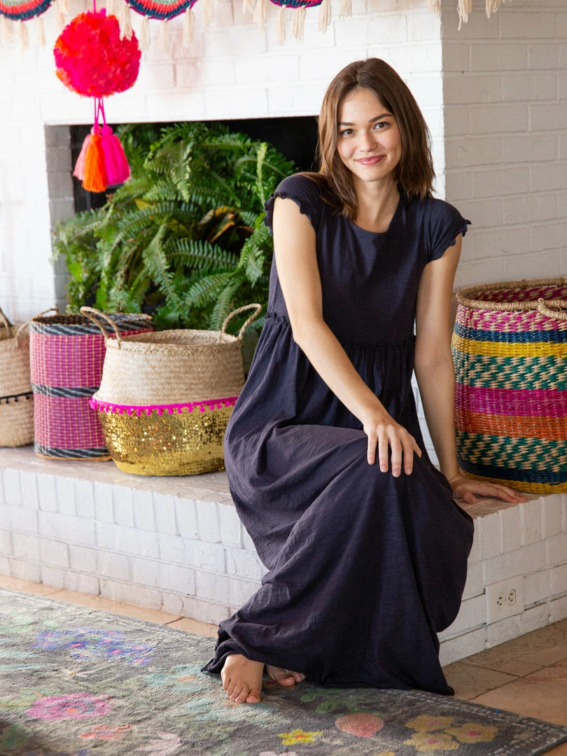 The Melanie Maxi Dress is simple and classic. It features an empire waist with a pretty ruffle detail, and is made from soft cotton slub material. It looks cute paired with one of our sweaters or your favorite jean jacket… and our favorite part is that you can cut it to your own length!