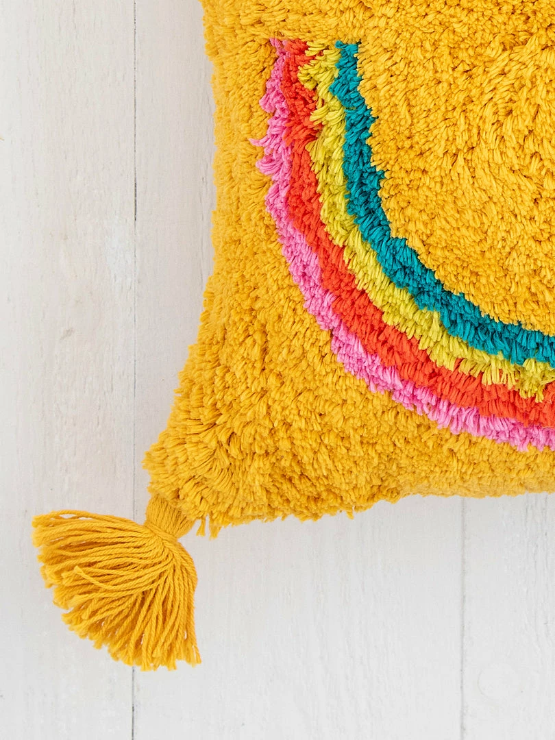 Bring happy vibes to your space with this hand Tufted Pillow featuring a sweet, smiley face! The backside is cotton with a zipper closure and it features fun little tassels on all four corners. It looks so cute thrown on a chair, couch or bed by itself or you can mix and match it with our other boho pillows for a little extra flare!