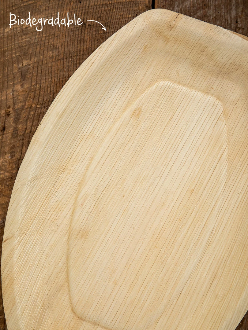 This set of 12 Palm Leaf Plates are such an awesome replacement for paper or plastic plates! They’re made from naturally shed Areca palm leaves and feature a beautiful wood like feel. We love using ours for family dinners or parties and they make great hostess gifts! The dimension of each piece may vary slightly since the product is completely natural. Plus, they’re biodegradable!