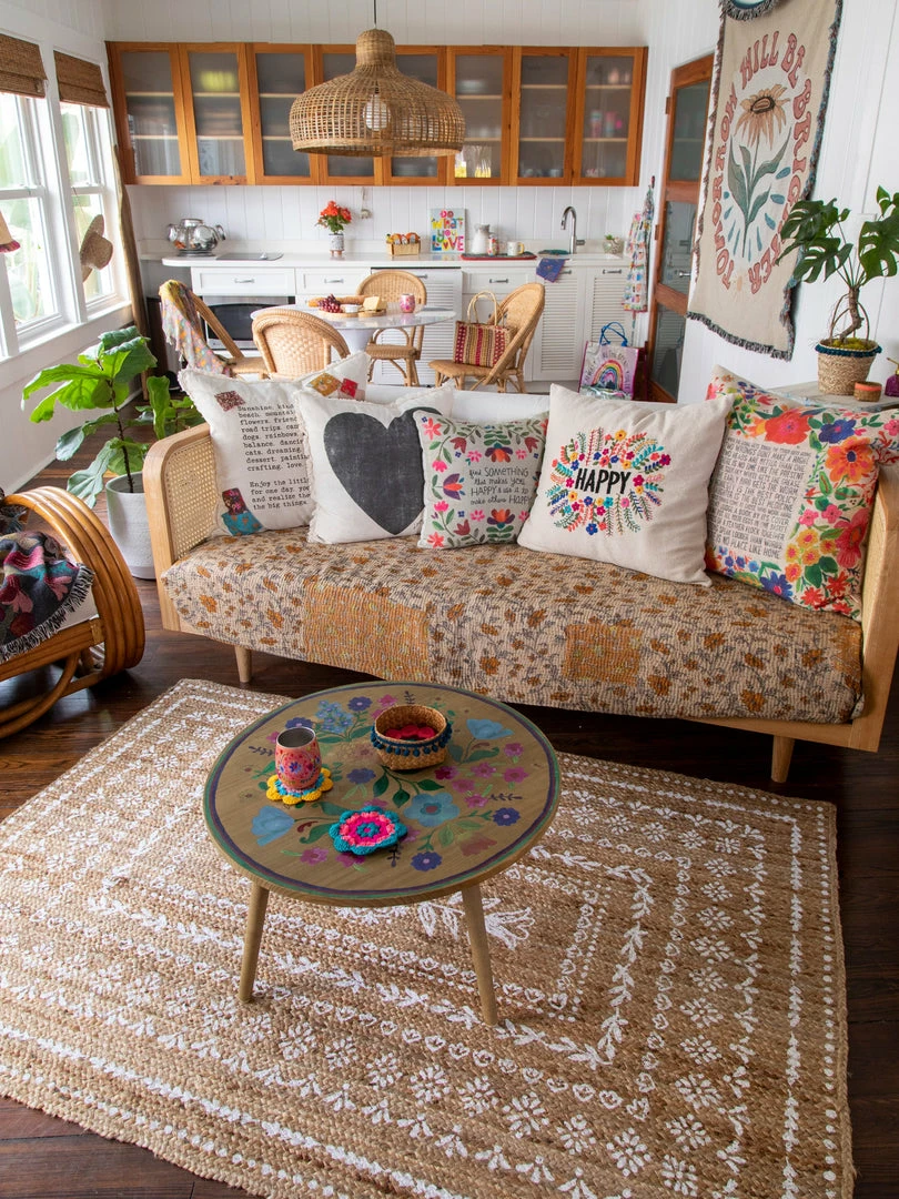 The perfect finishing touch to any room! Our printed jute rugs are just so beautiful! Crafted from natural fibers and painted with a unique and intricate design, it will bring happiness to any area in your home! We recommend using a rug pad to prevent slippage and protect your floor!