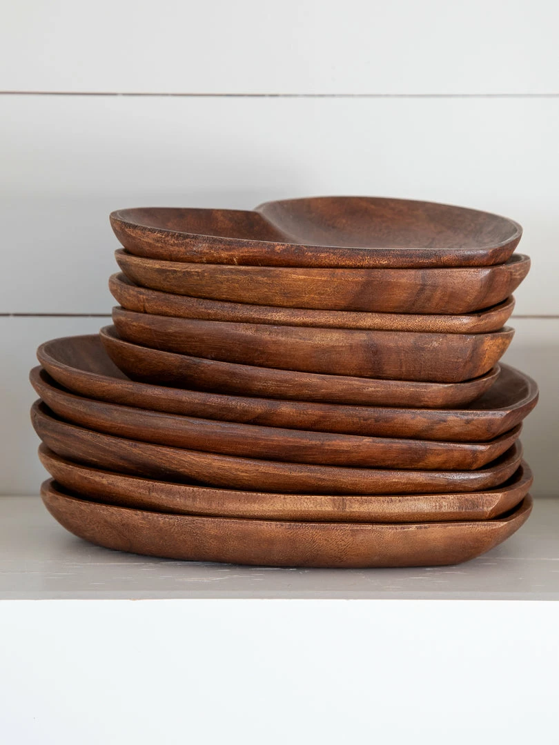 Everyone’s favorite room is the kitchen, and we love making things for it! During our global travels, we stayed at a rustic resort and they served all of our food on wooden plates and platters and they even used wooden serving spoons! They were so cool and inspired us to design something similar for our own homes! This Set of 4 Acacia Heart Plates are hand-carved and so elegant. They’re perfect for fun family dinners & hosting guests… and are so pretty, you’ll want to keep them out even when your guests go home! They’re made from real acacia wood, so they are hand wash only and each plate will be slightly different & unique.