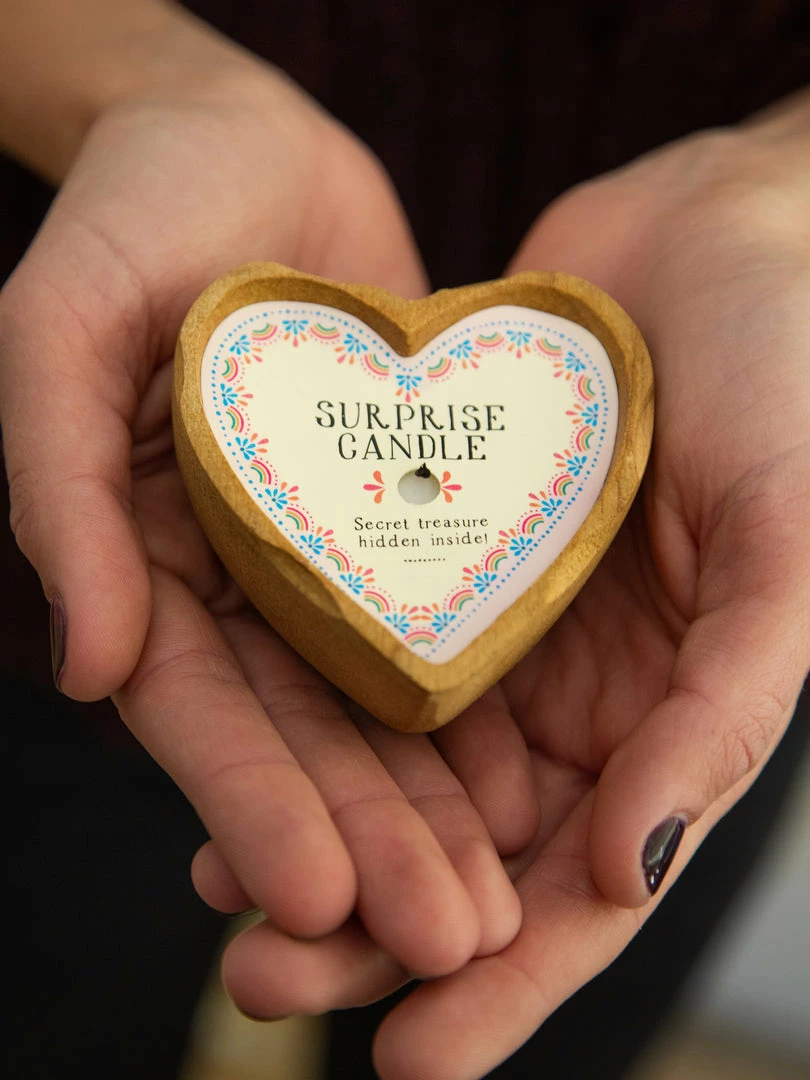 Do you love surprises as much as we do? This adorable wooden heart candle has a hidden surprise inside, wrapped in foil! (Hint: you wear it!) It’s the cutest candle ever… and when it burns down you can wipe the wax out and it becomes an adorable trinket dish, it’s like 3 gifts in 1!