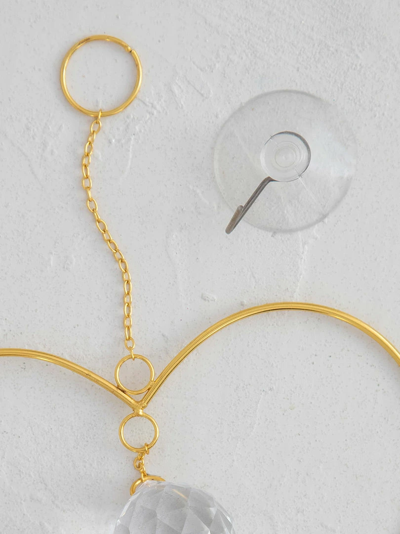 This Whimsy Sun Catcher is so magical! It features a pretty glass crystal inside of its metal frame and includes a suction cup for easy hanging anywhere that gets good sunlight! When the sun hits the crystal, you’ll see the beautiful array of colors dance around the room!