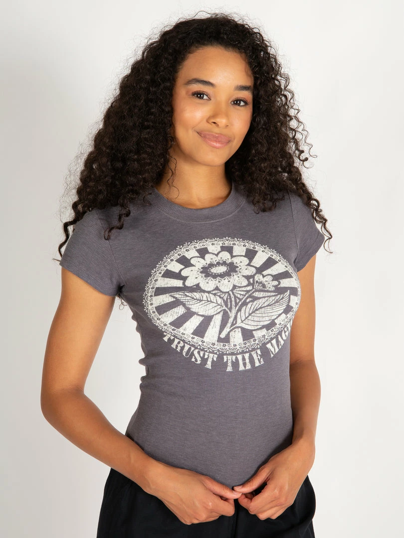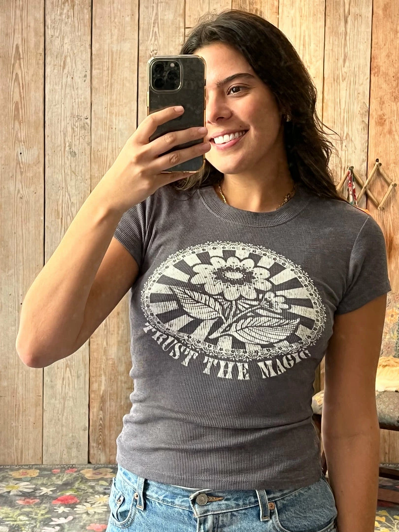 How cute is the Winnie Baby Tee?! This ribbed graphic tee features a crew neckline and looks great paired with any of our bottoms or lounge pants, under overalls, or with your favorite jeans! It’s fitted with a body-hugging silhouette, so we recommend sizing up for a looser fit! Compare our tee styles here!